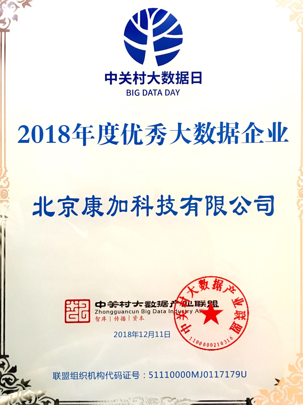 除了大咖云集,共商大勢,會上還同期發(fā)布了中關村大數(shù)據(jù)產業(yè)發(fā)展指數(shù)、中國大數(shù)據(jù)經濟生態(tài)圖譜,并公布年度優(yōu)秀大數(shù)據(jù)企業(yè)獎。北京康加科技有限公司(以下簡稱康加科技),憑借在產品研發(fā)、大數(shù)據(jù)應用、健康管理等方面的優(yōu)勢,與其他17家企業(yè)一起脫穎而出,榮獲“2018年度優(yōu)秀大數(shù)據(jù)企業(yè)獎”。
