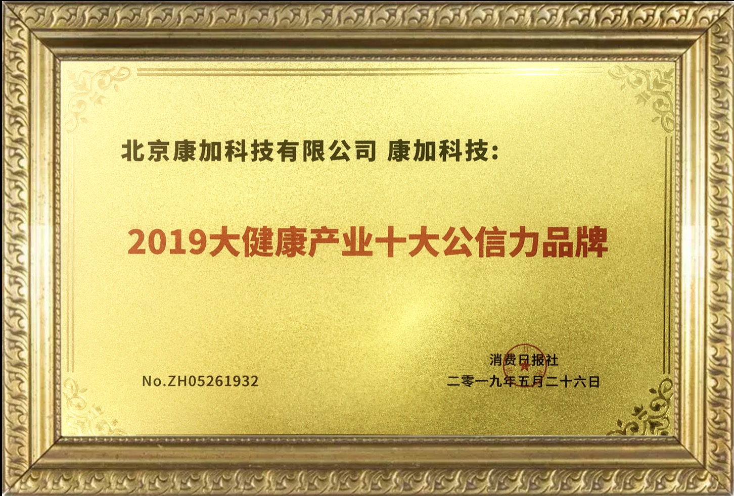 為推進(jìn)我國(guó)大健康產(chǎn)業(yè)有序發(fā)展,引導(dǎo)行業(yè)規(guī)范經(jīng)營(yíng),打造良好的營(yíng)商環(huán)境,5月26日,由消費(fèi)日?qǐng)?bào)社舉辦的“2019中國(guó)大健康產(chǎn)業(yè)誠(chéng)信發(fā)展論壇暨大健康行業(yè)誠(chéng)信自律倡議行動(dòng)”在北京召開(kāi),北京康加科技有限公司積極響應(yīng)了誠(chéng)信自律倡議,并榮獲了“大健康產(chǎn)業(yè)十大公信力品牌”獎(jiǎng)。